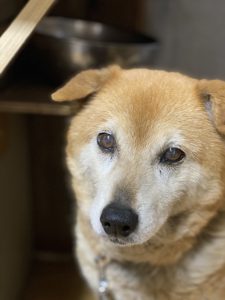 出会いは山梨の譲渡会場、野良犬の子供でした。はじめて見た時は他の兄弟と違ってどーんと小屋の中で寝ていました。この堂々とした姿に一目惚れして、連れて帰ることにしました。